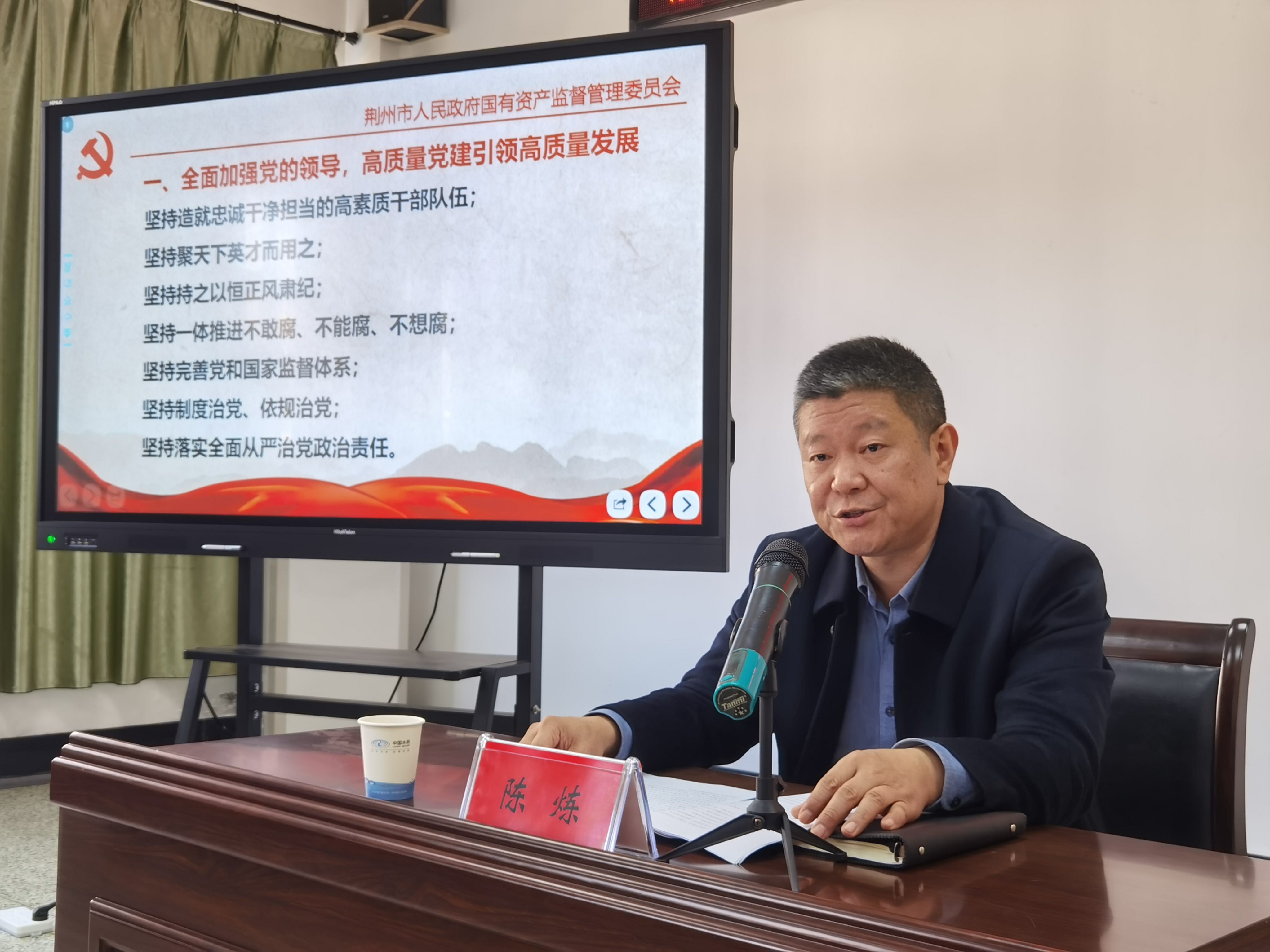 陈炼以“学习贯彻习近平新时代中国特色社会主义思想 深入推动国有企业改革发展和法治建设”为题,从全面加强党的领导,高质量党建引领高质量发展;深化国企改革创新,推动国企做强做优做大;以习近平法治思想为遵循,持续深化法治国企建设三个方面讲授主题教育专题党课。