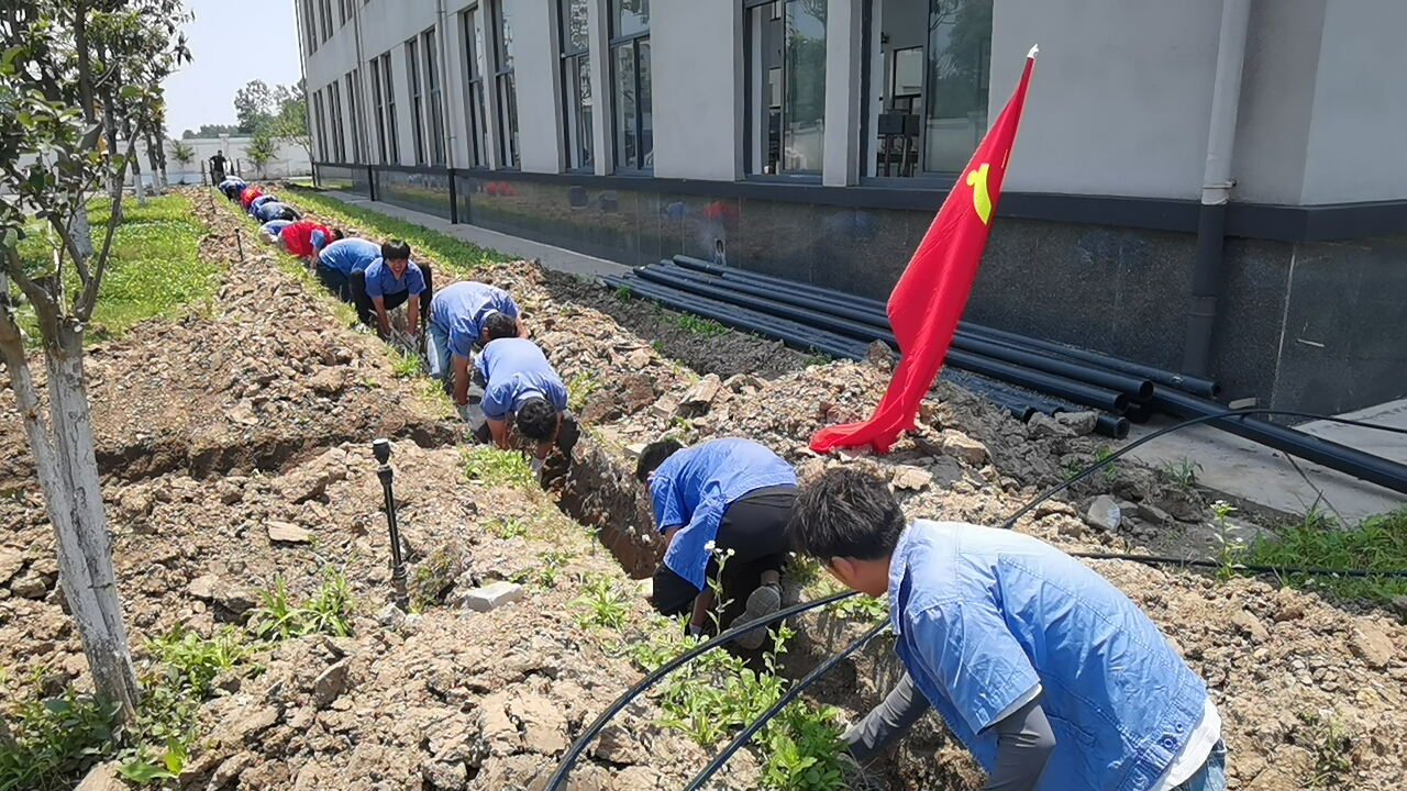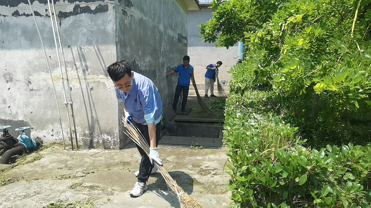 随后,大家在滩桥水厂开始了集体劳动。大伙分组协作,分别对厂区内外的杂草进行清理,扫地、拔草、清运垃圾,大家各有分工、各司其职,不怕脏不怕累,整个一副热火朝天、欢乐和谐的劳动氛围。经过一个小时的环境清理,整个厂区焕然一新。