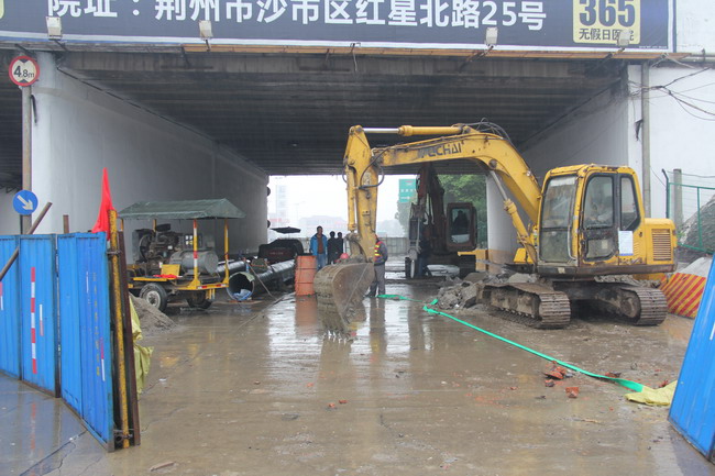10月20日,荆州水务集团对东方大道与沪渝高速交汇处DN600供水管道实施改造施工,以保证东方大道沿线居民的安全用水。