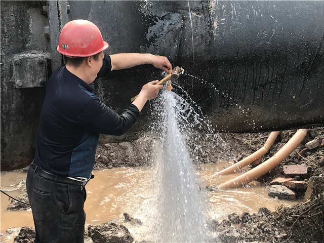 在经过连续紧张的10个小时作业后,整个开挖、拆除、更换、焊接工作克服重重困难,终于圆满完工。下午18点柳林水厂1号输水管阀门开启,供水恢复正常。
