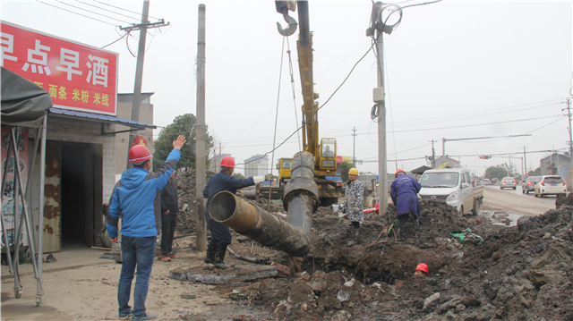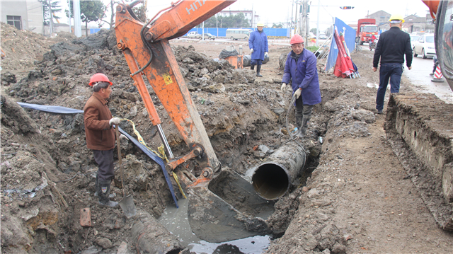 21日早8:00,全路段准时停水,5处新旧管道连接同步开始施工。尽管天气恶劣,但施工员们坚守岗位,各司其职,全然不顾寒冷的天气和泥泞不堪的作业环境,顶风冒雨,高效推进。下午15:00,荆马公路两侧、木材公司门口3处施工任务首先完成,晚上18:00,天兴医药和西环路口2处也顺利完工,随后开始对管道进行放空冲洗,晚23:30全线恢复通水。