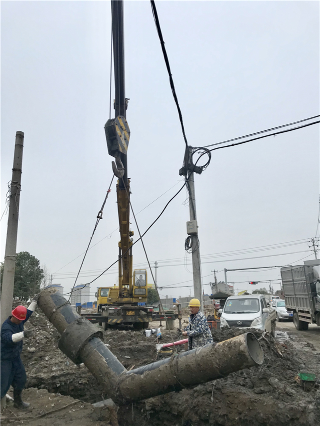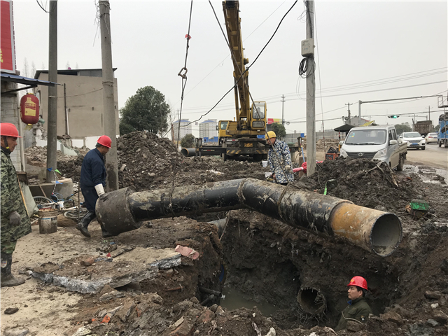 城北快速路供水管网迁改工程全长约10公里,工程造价2300万元,起止点为卓尔城至楚都大道,是贯穿2019年全年的一项重大给水管网迁改任务。本次施工是对城北快速路西环路与318国道十字路口共5处节点同时实施新旧管道的切换工作:木材公司DN400mm钢管与DN400mm球管连通;天兴医药门前DN400mm钢管与DN400mmPE管连通;西环路口DN600mm钢管与DN400mm砼管连通;荆马公路东侧DN400mm钢管与DN400mm球管连通;荆马公路西侧DN300mm钢管与旧DN300mm砼管连通。