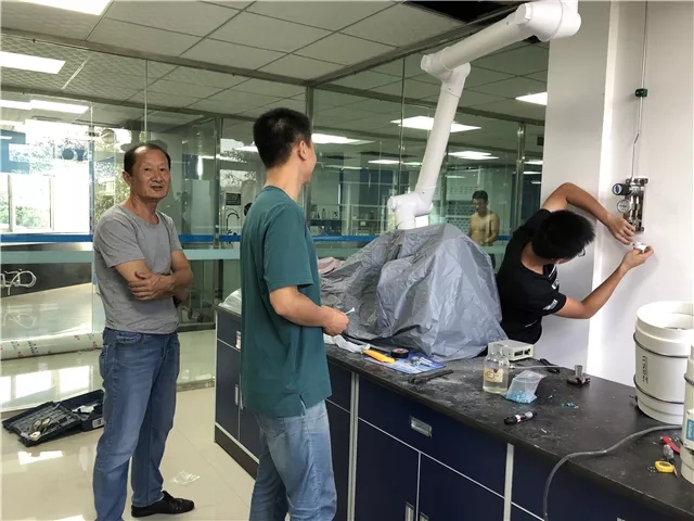 改造工程启动之初,水质检测中心就召开了动员会,介绍改造工程的内容、意义和工作部署,动员部门全体人员积极参与、高度配合。随后,水质检测中心主任王露、柳林水厂厂长刘保国、高级电气工程师王清福、柳林水厂机修班班长张耀武等几名专班成员前往恩施水质检测中心进行了参观,通过学习借鉴他方先进经验并结合自身特点,专班同志回来后又迅速对施工方案进行了细化完善,并最终敲定。方案一出炉,改造项目专班就进驻到了水质检测中心,改造工程随即如火如荼的开展了起来。分工安排、物资采购、土建施工、管路布置……各项工作紧密衔接、井然有序。截至7月底,改造工程已接近尾声,进入到最后的设备调试运行阶段。