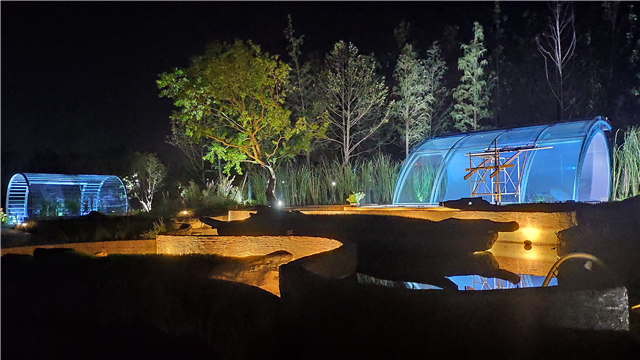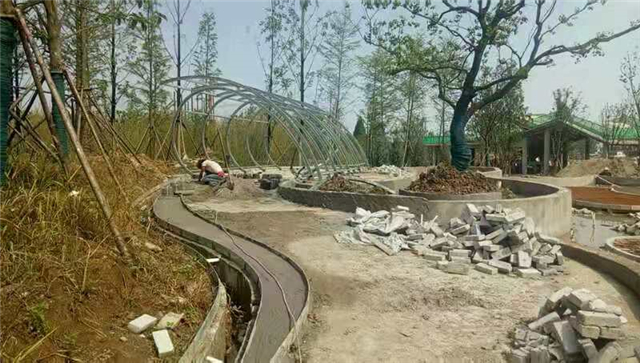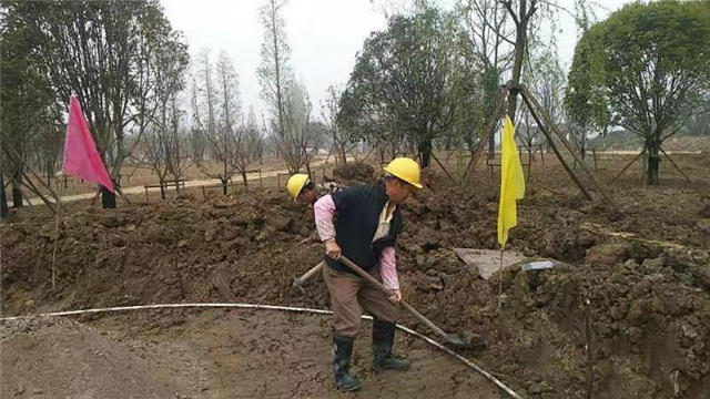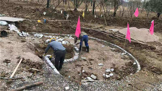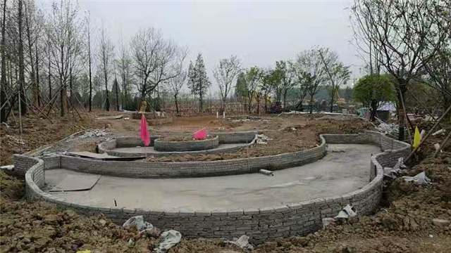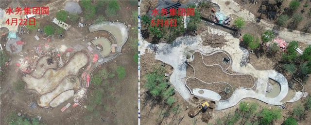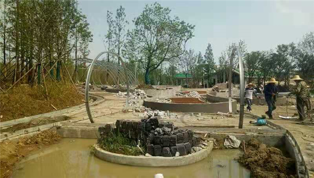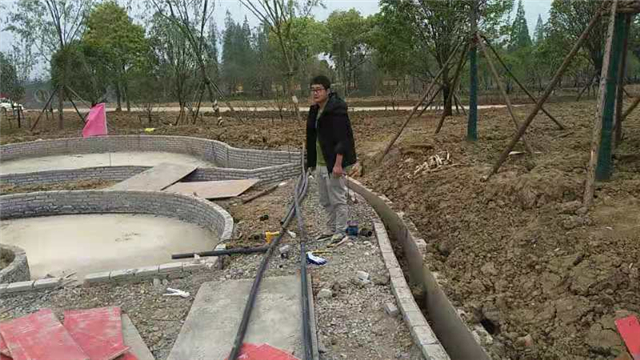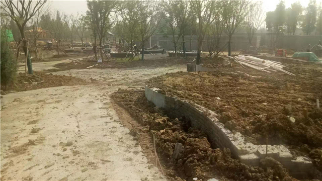 水电部分完成:给排水管道开挖及回填,水池、人工湖、园路给排水管道敷设,水电管道预埋,水池及园区电气管道预埋(80%)。