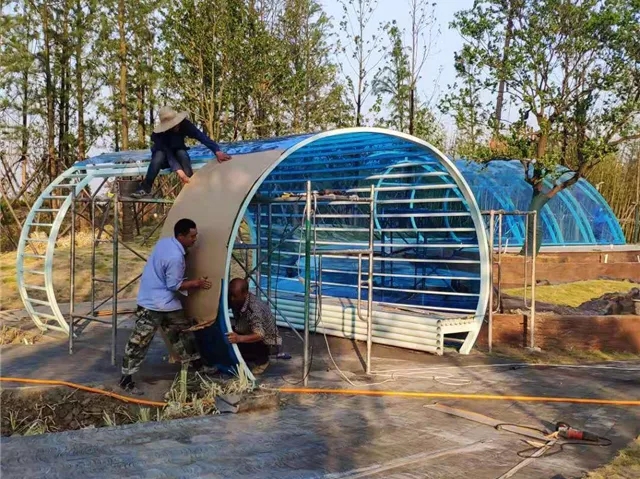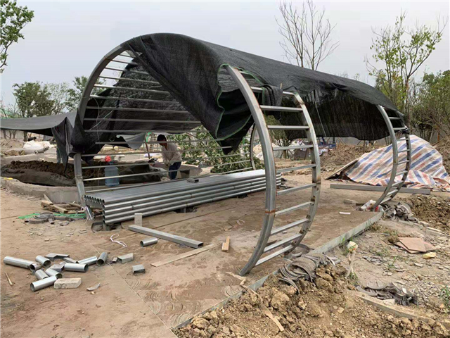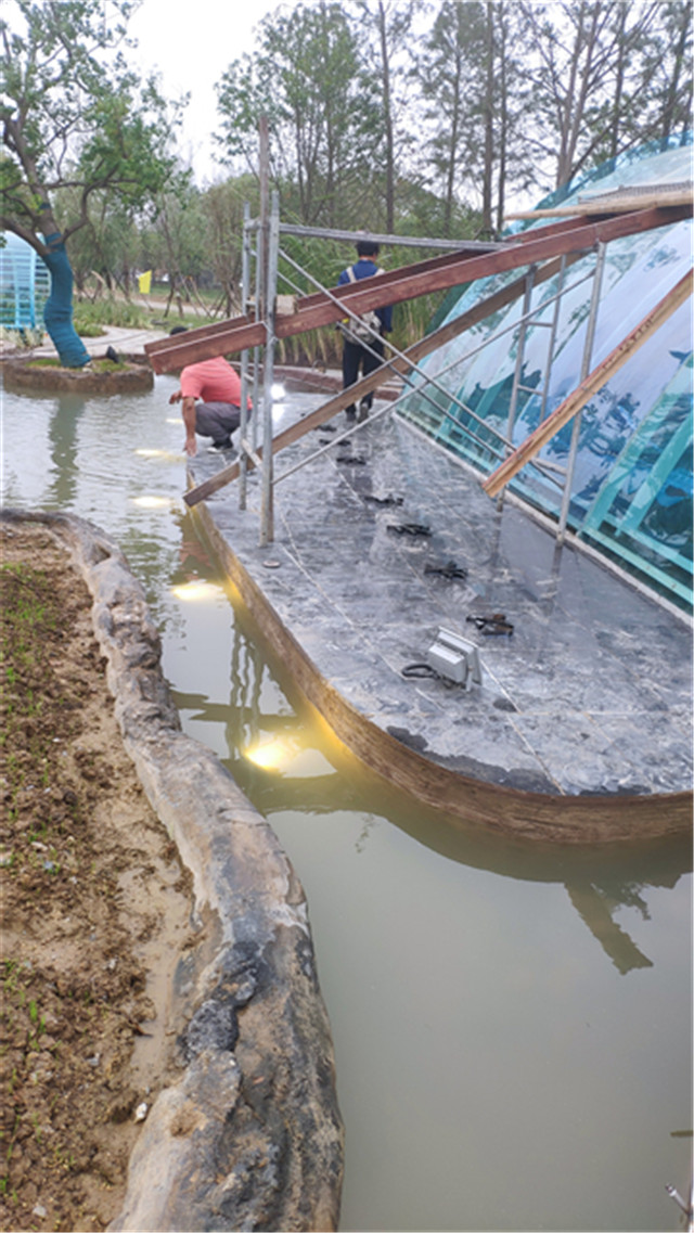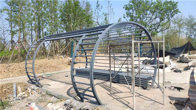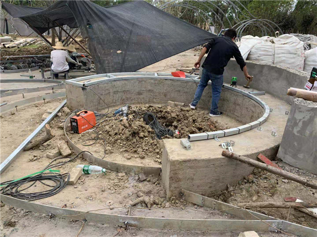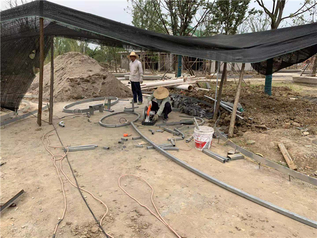 6月3日 水中云盆制作中,休憩亭结构现场焊接
