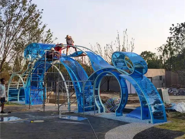 7月29日 大门景观构架安装亚克力板