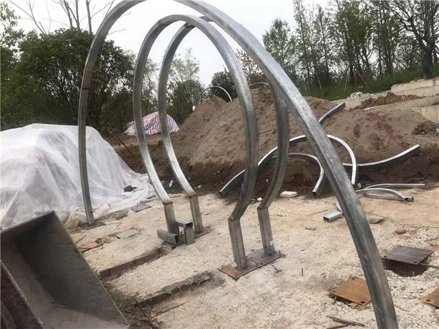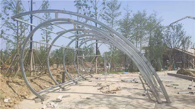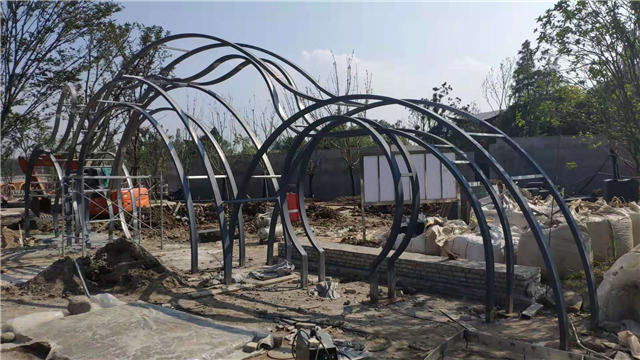 1、休息亭钢结构安装完成60%、骨架及坐凳焊接完成,展厅钢构件已安装完毕,大门景观构架已完成,水务LOGO骨架焊接安装完毕,休息亭、展厅、大门骨架油漆完成,安装展厅内侧亚克力板;
