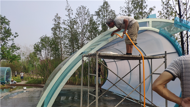 在临近开园的最后时日,荆水园将全面调试检查,部署好开园的最后准备工作,力求以最饱满的园区景致,迎接市民的到来,让游客身处园中时,无论从景观上、功能上还是文化上,都能感受到:荆州水务集团会始终如一地秉持着“以水为本、达善社会”的经营理念为广大用户服务。