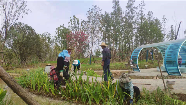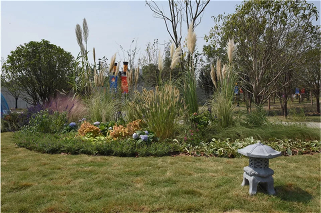 绿化部分完成:与设计方沟通修改观赏草及水生植物配置文案,以观赏草为主题修改植物配置设计,绿化已完成全覆盖,水生植物种植过半,已替换枯萎苗木,清扫园区。