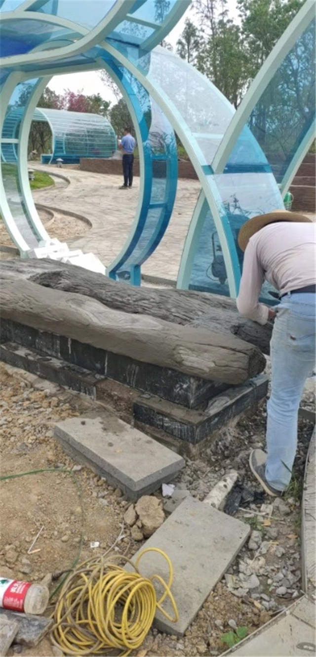 园建部分完成:小云盆纹理处理,亚克力板拆除清洗、局部补漆,展厅亚克力板铆钉美化处理;