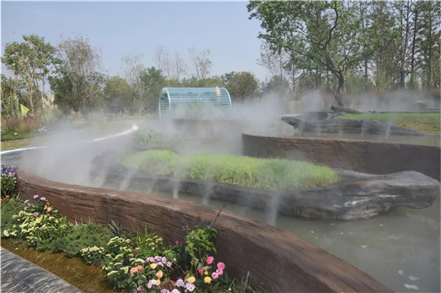 从设计到施工,从春风如沐到秋风微凉,荆州水务集团展园如今已呈现出一幅唯美的生态水艺流动画卷。经历了地形营造、水景修饰及云盆雕琢、软景艺术单体布置及配套设备安装、细节打磨及场地整理,荆水园的诞生更似一部水务人栉风沐雨的奋斗史。园中的一情一景皆源自“中国水务·情润万家”的品牌文化,融科技于自然的绿色工艺更展现了荆州水务人以水为师、锐意创新的智慧服务理念。
