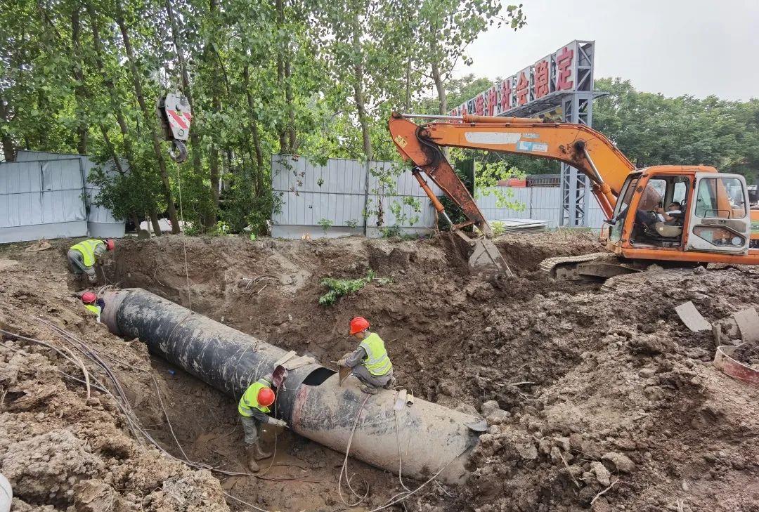 为避免对市政道路改造工程施工造成影响,并尽可能减少停水对市民造成的困扰,鼎鑫源工程公司项目部针对本工程管径大、技术要求高、施工时间紧的特点,制定专项施工方案,将两条出厂水管分为两个分项依次进行施工;同时做好现场人员的技术交底和安全教育,严格按照方案和规范要求施工,并在施工过程中做到落实责任、明确分工、通力配合,着重对施工质量与安全措施进行检查,使整个工程各项工序紧密衔接,难点问题合力解决,高标准、高质量地完成工程建设。