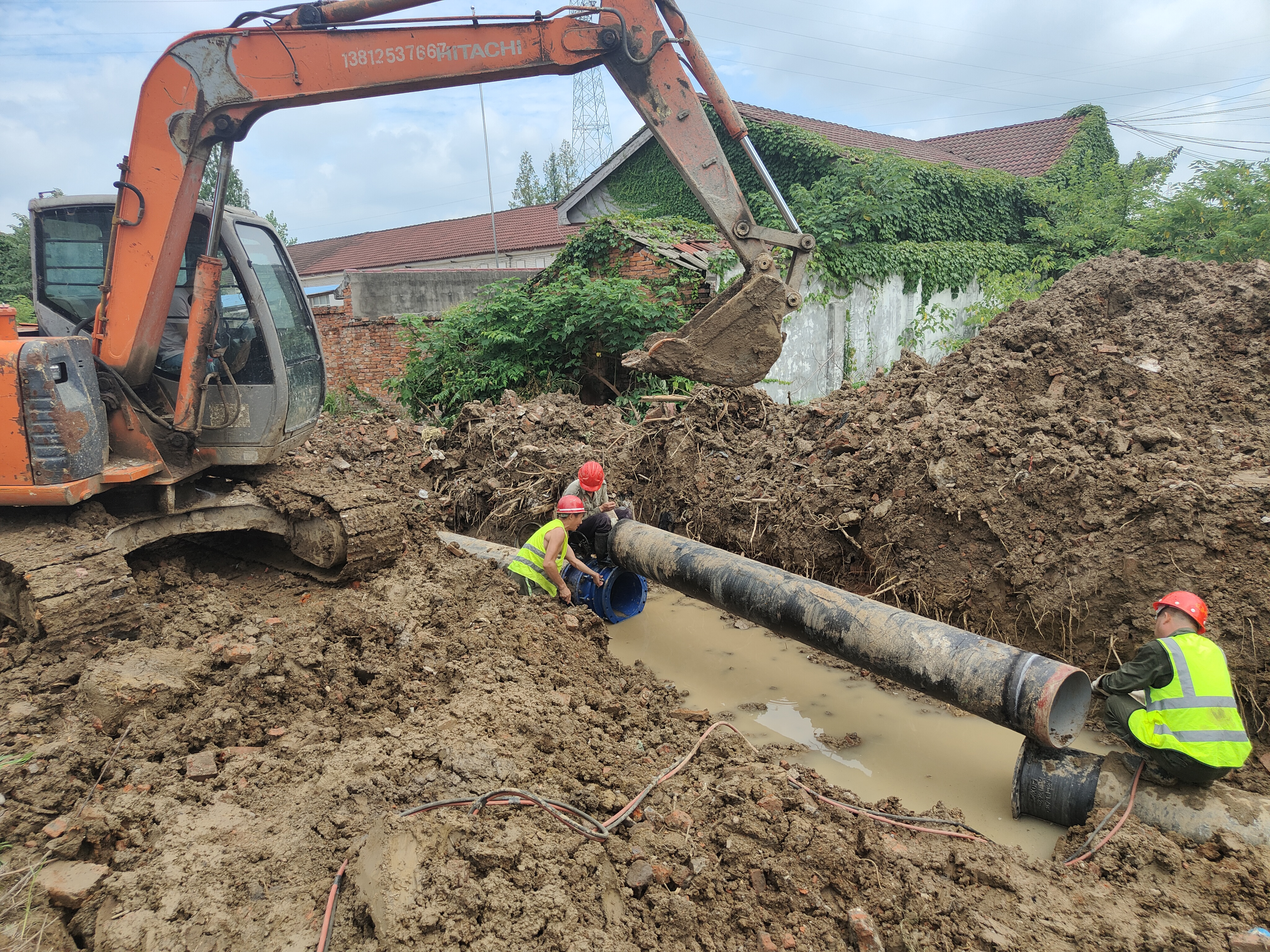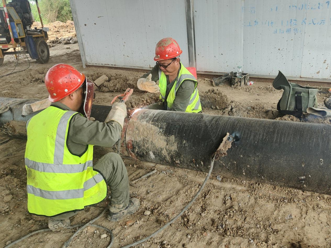 在复兴大道西延线供水管网迁改项目的施工现场,鼎鑫源工程公司的施工员正在进行钢管焊接与安装作业。该工程位于复兴大道与引江济汉渠相交处,为配合复兴大道跨江汉运河桥项目建设,荆州水务集团出资98万元,对影响新建桥梁施工的给水管道进行迁移改造,避开桥梁桩基,共铺设DN400mm钢管200米、DN600mm钢管270米,迁移后与现状管道两端进行连通,保障沿线居民及生产企业的正常供水。