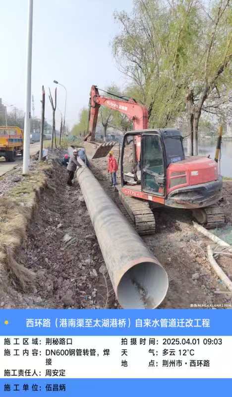 据悉,西环路(复兴大道至荆江大道)供水管网迁改工程项目预算609万元,全长2.1公里,分为两个标段实施:一标段(港南渠至太湖港桥)段于2024年11月率先完成荆秘路以北至太湖港桥南段施工,我方施工进度需根据市政道路方建设进度同步实施,预计将于4月下旬完成一标段施工;二标段(繁荣街至复兴大道北)路段材料已进场,待总包方移交作业面后进场施工,计划与道路工程无缝衔接,为西环路改建工程奠定坚实基础,助力城市供水体系提质升级。