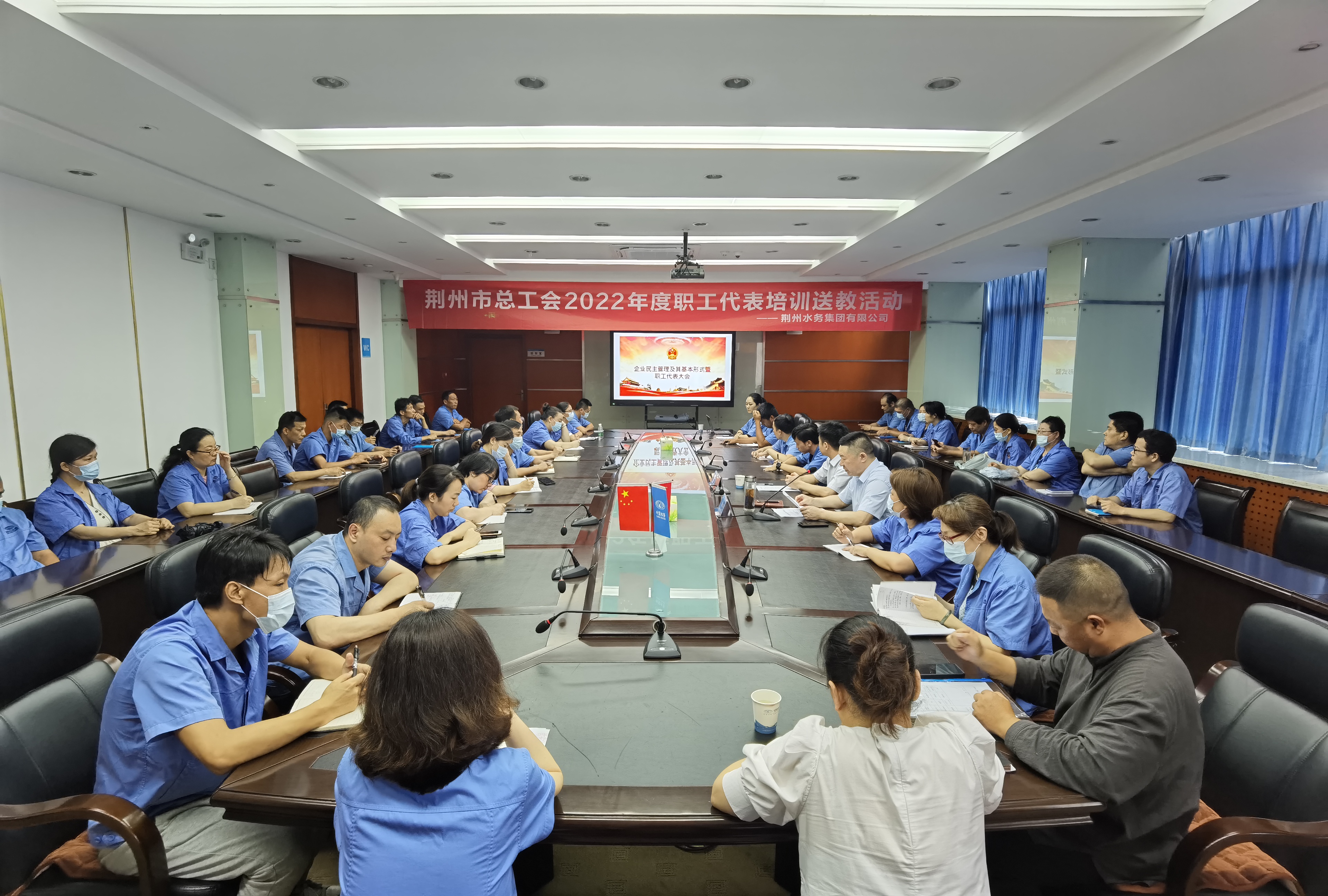 为进一步提升基层工会职工代表的素质和能力,切实加强和改进基层工会工作,6月24日,荆州市总工会2022年度职工代表培训送教活动走进荆州水务集团。荆州市总工会党组成员、副主席张征军为来自基层的46名职工代表进行业务培训,提升综合素质,履行好民主参与、监督、管理职责,更好地维护职工合法权益,推动企业和谐稳定发展。