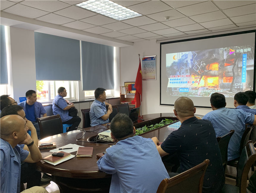 会议首先播放了几起在施工过程中挖断燃气管道的案例,触目惊心的画面敲响安全生产的警钟;随后,从施工前准备工作、地下管线安全事故应急措施、燃气泄漏处置方法三个方面进行学习,绷紧安全思想的弦。