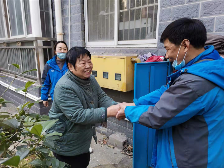 兴盛街社区空巢老人王祖秀,老伴患尿毒症多年,需要定期做血液透析治疗,儿子在外地打工,退休工资微薄,生活较为困难。为防止寒冷天气下水表冻破影响正常用水,志愿者为其包扎了水表,同时到家中为其检查供水设施,清洗水龙头滤网,王祖秀老人感动得不停道谢。