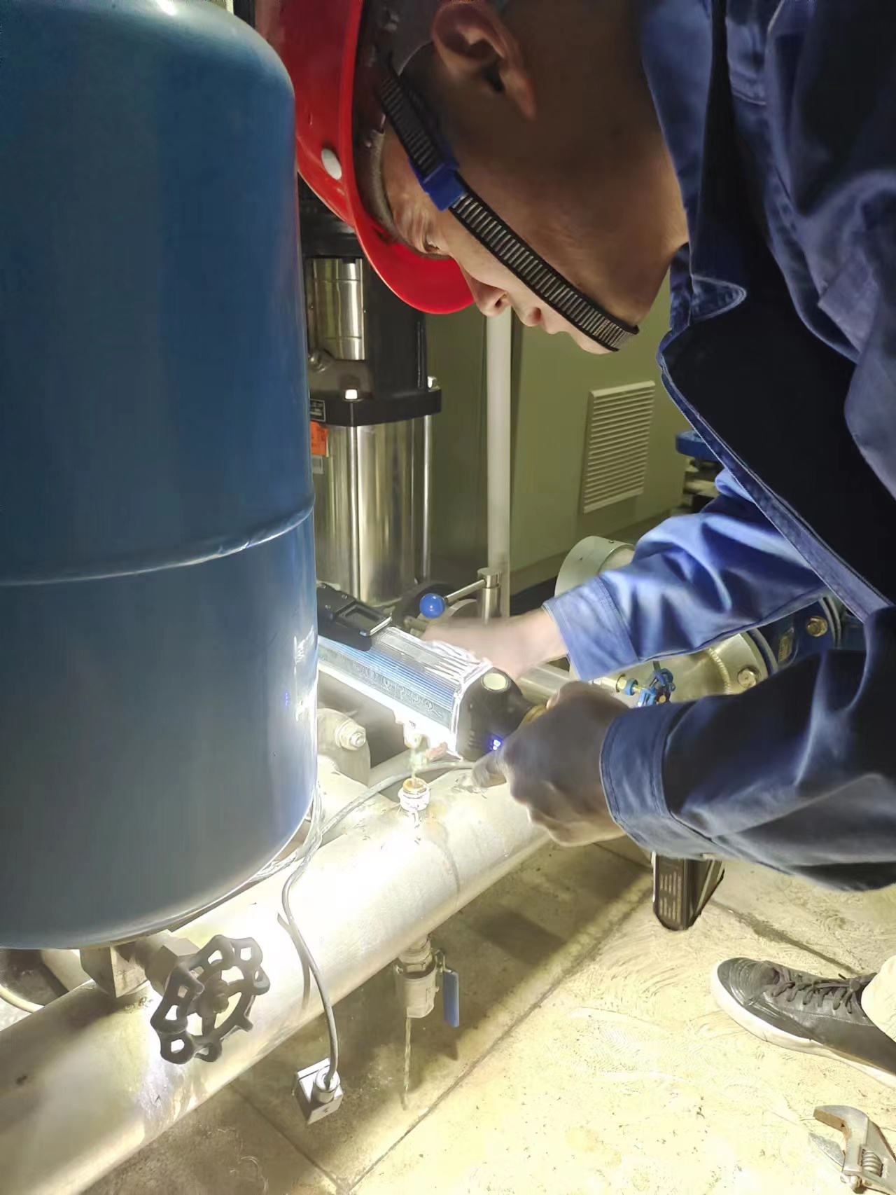 该小区自加压设备安装调试验收运行以来,一直由小区物业自行管理。4月23号中午,泉洁公司收到小区物业反映,加压设备发生了故障停机的情况,无法正常启动供水。尽管此时相关工作人员正在进行其它项目的维护,但公司努力协调、妥善安排,在最短的时候内安排了人员赶赴现场。经检查发现,该加压设备因高区设备针型阀堵塞造成了故障停机,堵塞物由于日积月累难以疏通,只能安排免费更换。和物业沟通后,工作人员现场及时对针型阀进行了更换,让加压设备恢复了正常运行。