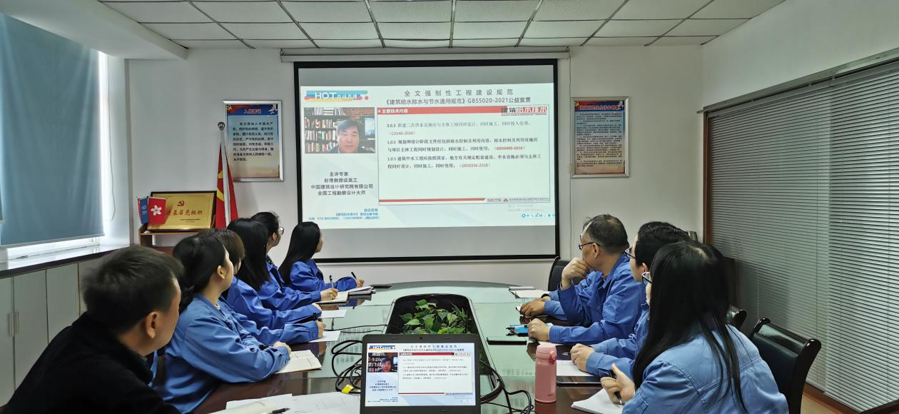 目前《建筑给水排水与节水通用规范》GB 55020-2021已正式实施,为确保浩宇设计公司采用的是国家最新技术规范,浩宇设计公司特于2022年4月组织全体设计人员召开了《建筑给水排水与节水通用规范》GB 55020-2021专题宣贯培训会,坚持做到全员普及。