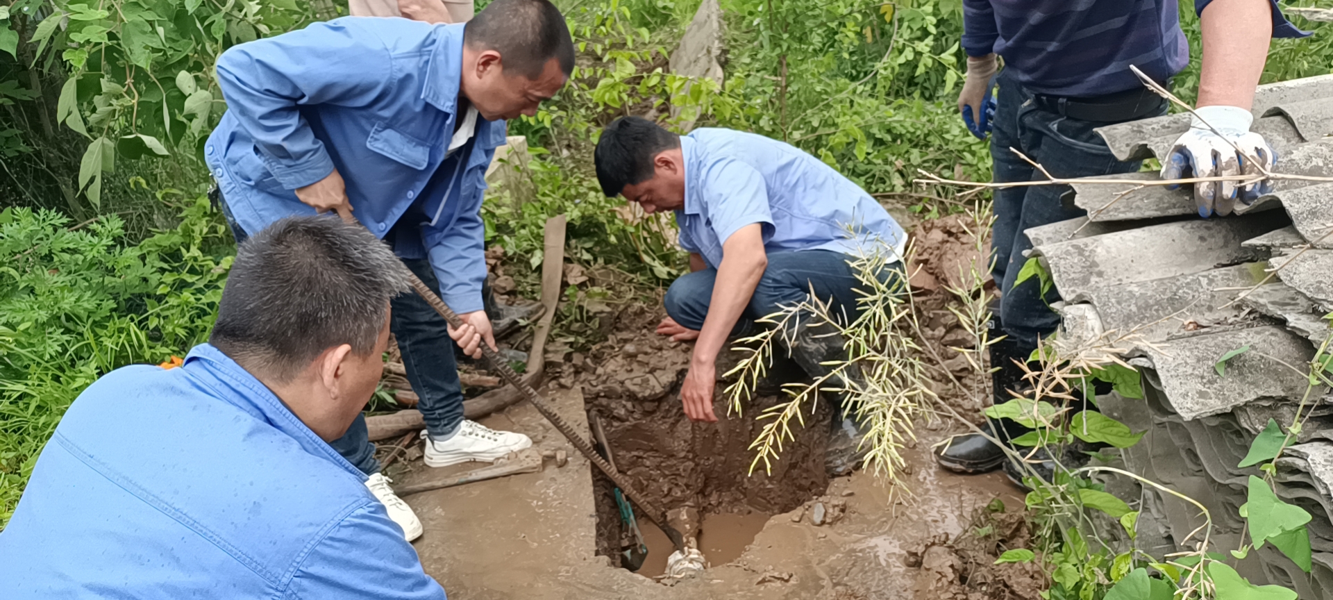 5月18日9点,滩桥供水站接到热心居民电话,反映江北农场集镇水厂路有一处地下水管爆裂,随后抢修人员火速赶往现场,发现是DN110主水管破裂,约在地下一米左右。该地段人口密集、车流量大,而且供水管道周围还铺设了燃气和通信光缆等管线,地下情况及其复杂,给维修带来很大的难度。为尽快恢复供水,最终决定采取人工和机械相结合的方式进行作业,再利用DN110的管卡加固维修。全体人员团结一心,尽全力缩短抢修时间,最大限度降低对居民正常用水的影响。最终经过3个小时的奋力抢修,于当天下午1点恢复了正常供水,比预计时间整整提前了2个小时。
