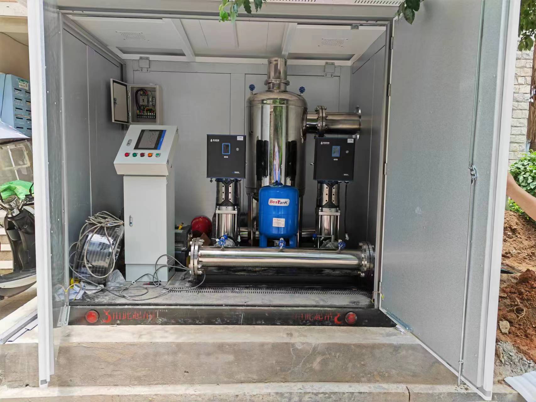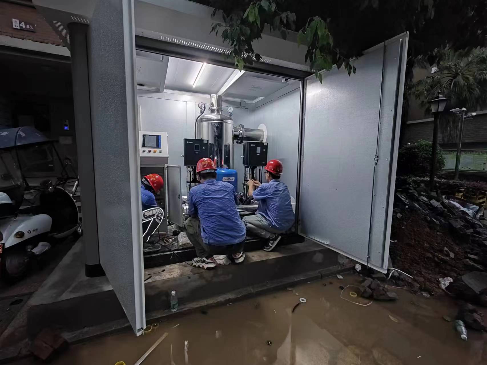 银都花园小区,坐落于荆州区北环路51号,建于十年前,最高楼层为6楼,工作人员初到现场,根据当地居民反映从前几年开始,三楼以上的住户就用水困难了,也难以找到解决之法。工作人员上门检查情况属实,唯一办法就是安装一套加压设备,但费用问题又成为了居民心中的一块心病。针对此情况,荆州水务集团快速反应,联合湖北泉洁二次供水工程有限公司制定出了一套关于“银都花园”的加压方案。充分考虑到该小区的不易及晚上设备噪音扰民情况,由荆州水务集团出资,定制了一座钢板隔音一体化智慧泵房。