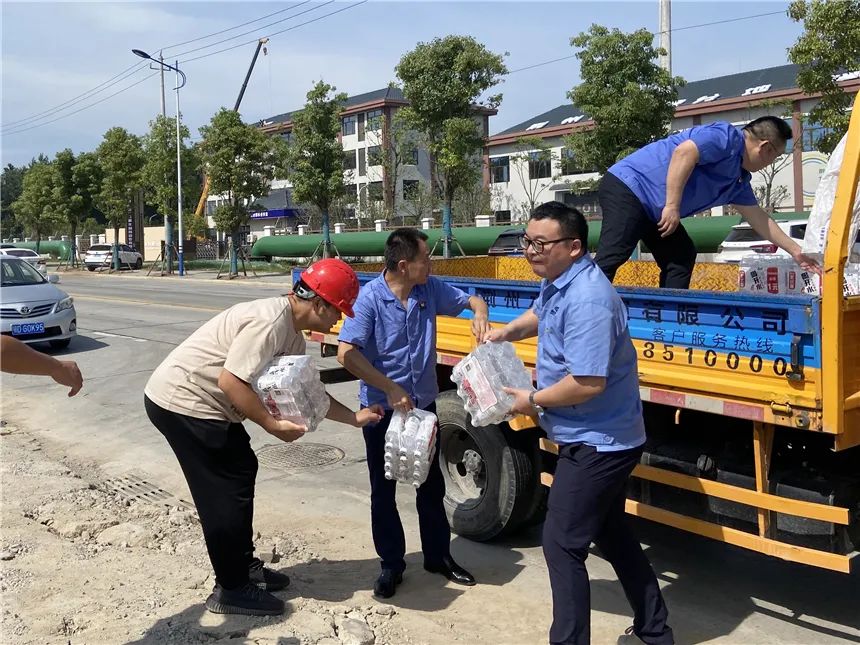 7月14日上午,荆州水务集团常务副总经理唐志国一行来到管网抢修点,看望慰问坚守一线的供水应急抢修员,向他们送上了防暑降温用品。