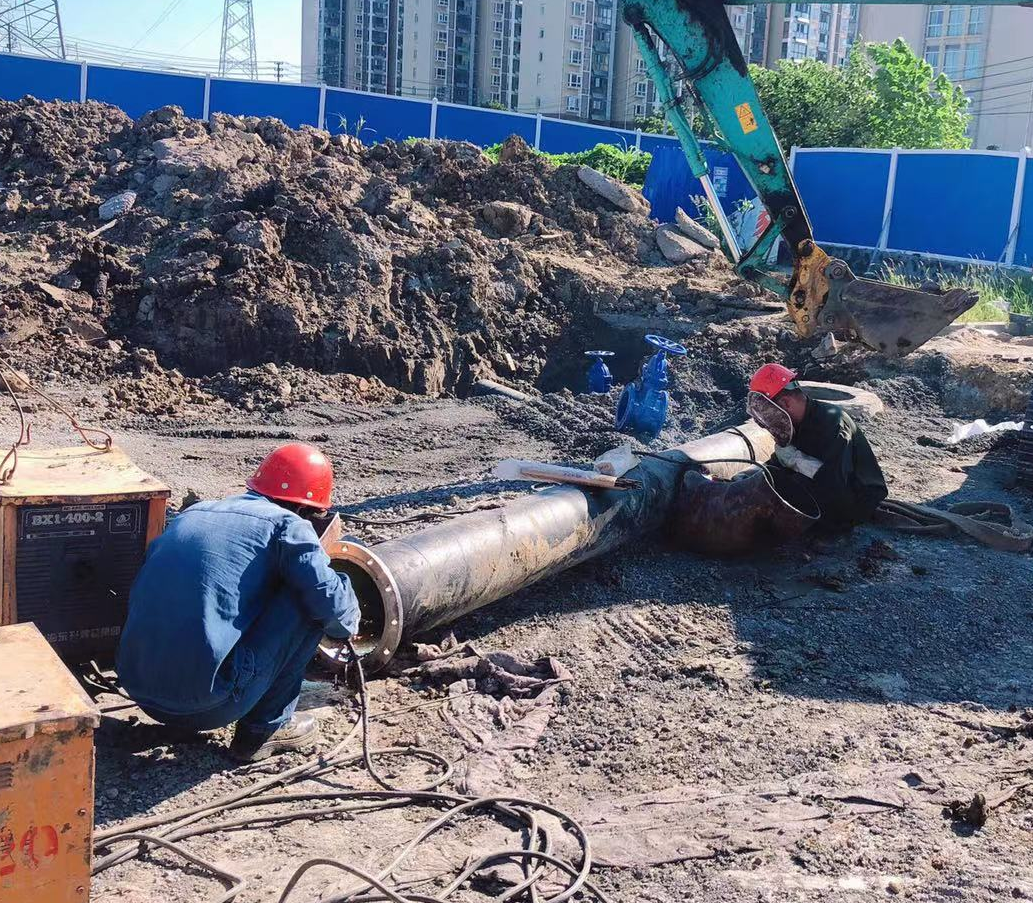 在发展大道(拍马东路—结义路)供水管网建设工程现场,焊工师傅们正在经受着阳光和焊花的双重“烤”验。发展大道作为连接城北片区新建学校之间的一条重要配套道路,正在加紧建设中。为配合道路施工方进度,焊工师傅们克服高温,争分夺秒,力争早日完工,保证道路按计划在今年秋季开学前全线贯通。