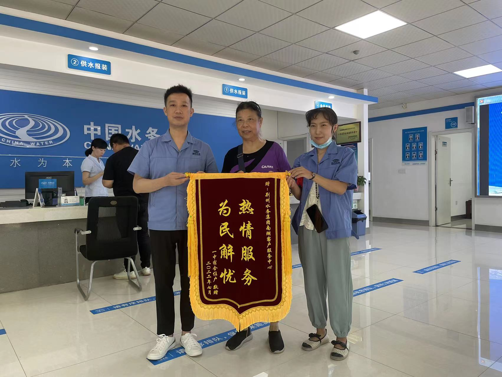 “感谢南湖客服中心的热诚服务,真真切切为我们解决了现实问题。”同一天,南湖辖区一中宿舍的杨阿姨送来了印有“为民解忧,热情服务”的锦旗来到荆州水务集团南湖营业厅,向南湖客服中心工作人员表示感谢。