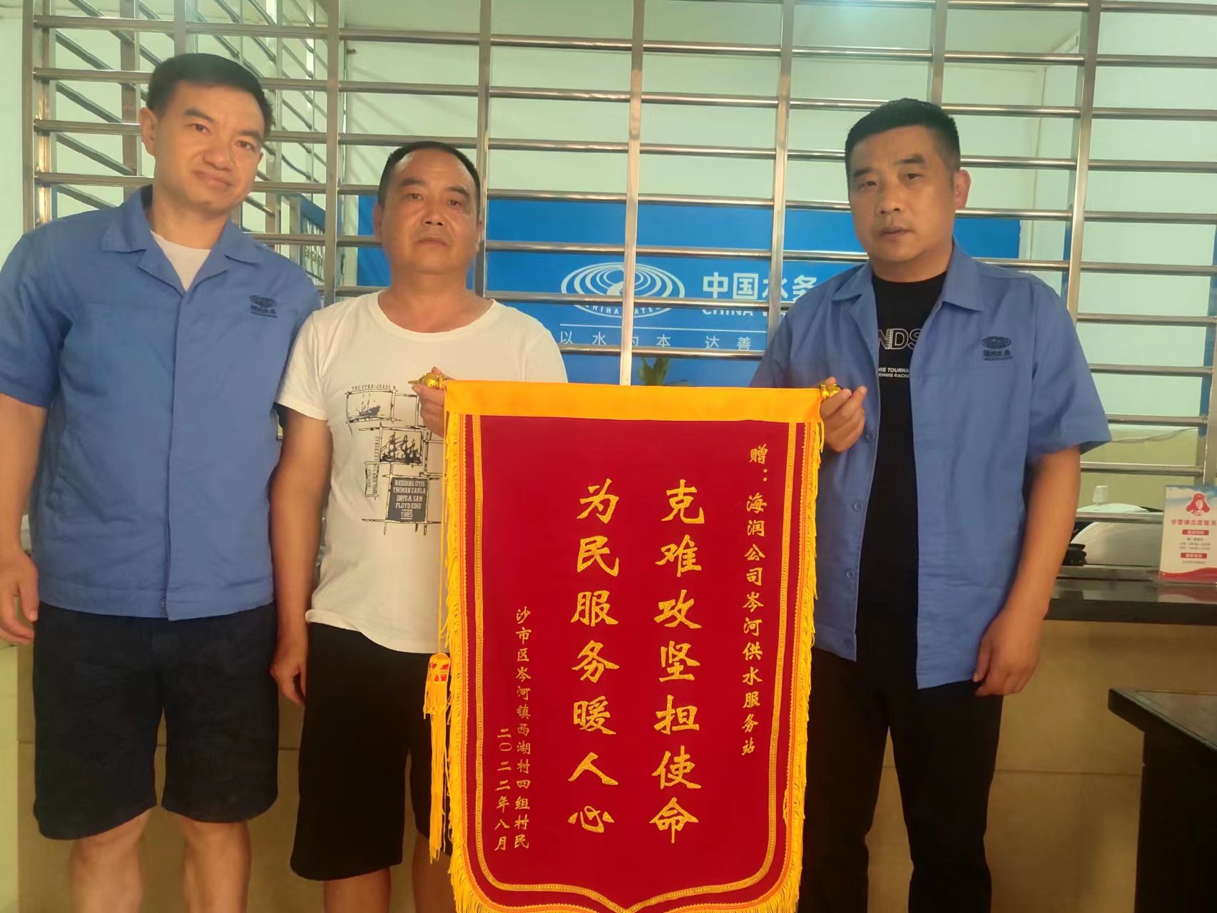 8月3日,西湖村村民将一面锦旗送到了岑河供水服务站,上面写着“克难攻坚担使命 为民服务暖人心”,这面锦旗既是对供水服务工作的肯定,也是鞭策和鼓励,更是一份沉甸甸的责任。岑河供水服务站站长潘德荣表示,“服务群众无止境,我们将会继续发扬供水人不怕苦,不畏难的艰苦奋斗精神,勇往直前,全力保障供水安全。”