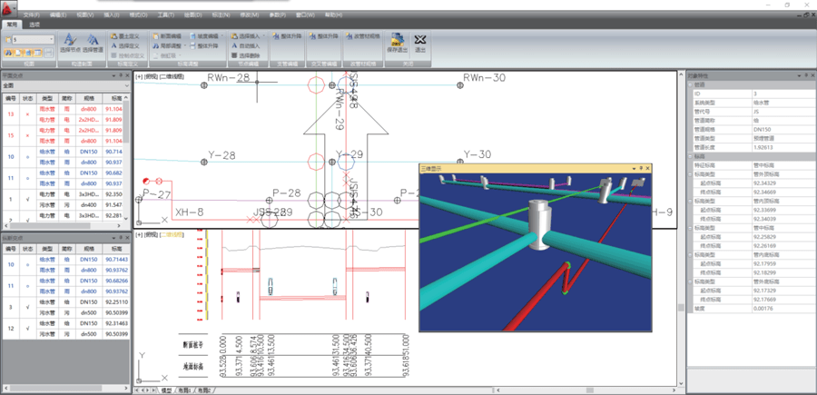 管立得具备进行地形图识别和三维曲面展示编辑、管线平面智能设计、竖向可视化设计、自动标注、自动表格绘制和自动出图。平面、纵断、标注、表格联动更新等功能。能够满足规划设计、初步设计、施工图设计等不同设计阶段的需要。