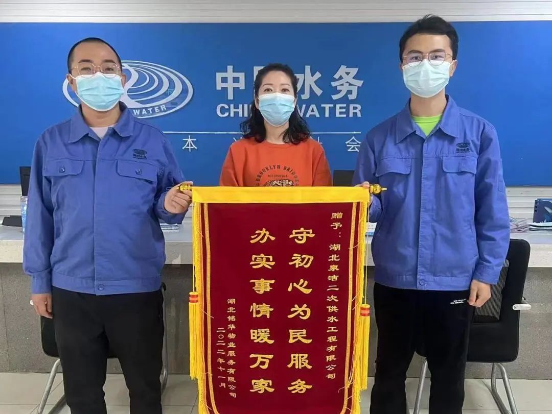 11月3日上午,湖北铭华物业服务有限公司负责人将一面写有“守初心为民服务,办实事情暖万家”的锦旗送到了荆州水务集团客服中心,代表鑫都公馆和香榭丽都两个小区居民衷心感谢荆州水务工作人员为民服务办实事。