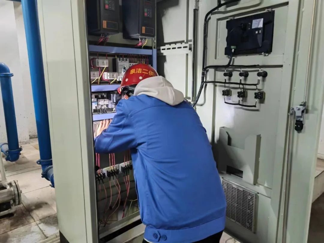 11月1日上午,鑫都公馆物业反映中区加压设备显示屏黑屏,设备停止运行,工程技术人员王康刚完成上一个抢修任务,又马不停蹄地赶到了鑫都公馆。经检查是因为24V供电电源长期运行损耗过大,使其无法向显示屏和恒压控制器供电,导致设备停机及显示屏发生黑屏,需要更换新的24V供电电源。由于该小区加压设备早已过保,考虑到该小区的难处以及居民用水的紧迫性,公司免费为其更换了一台24V供电电源,使设备重新恢复了供水,小区物业负责人对泉洁二次供水公司表达感谢,她说:“论服务贴心周到,还是咱们荆州水务可靠!”
