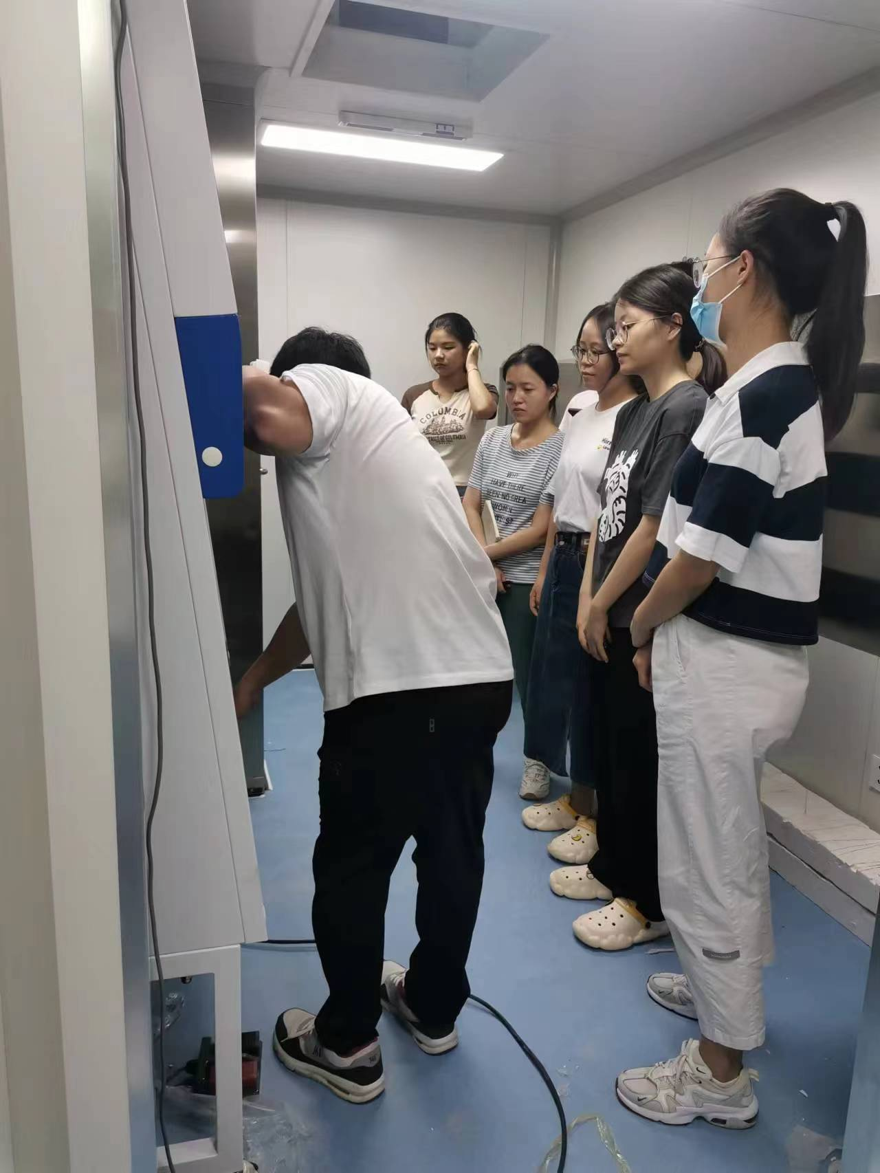 除了硬件设施的改造完善,水质检测中心也对专业检测人员进行了微生物实验安全操作专场培训,培训内容包括进入洁净室的换鞋更衣消毒流程、如何安全使用生物安全柜、如何对水质常见微生物指标进行规范检测以及如何日常维护微生物实验室洁净。