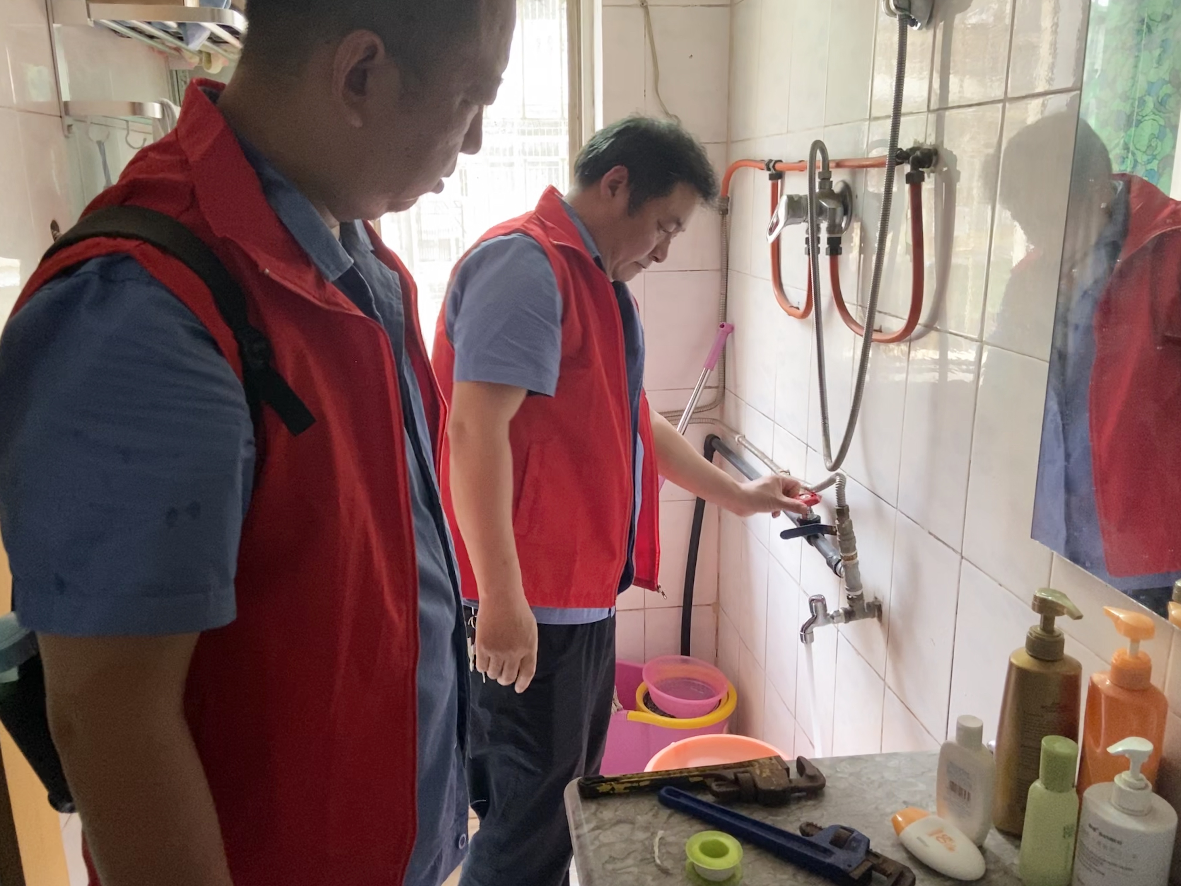 同时,党员们还分成2个小组,分别对社区的水表井、阀门、抽水马桶、热水器等用水设施进行了检查和维修,并帮助居民们免费更换了节水型水龙头,以保障居民生活的用水安全。