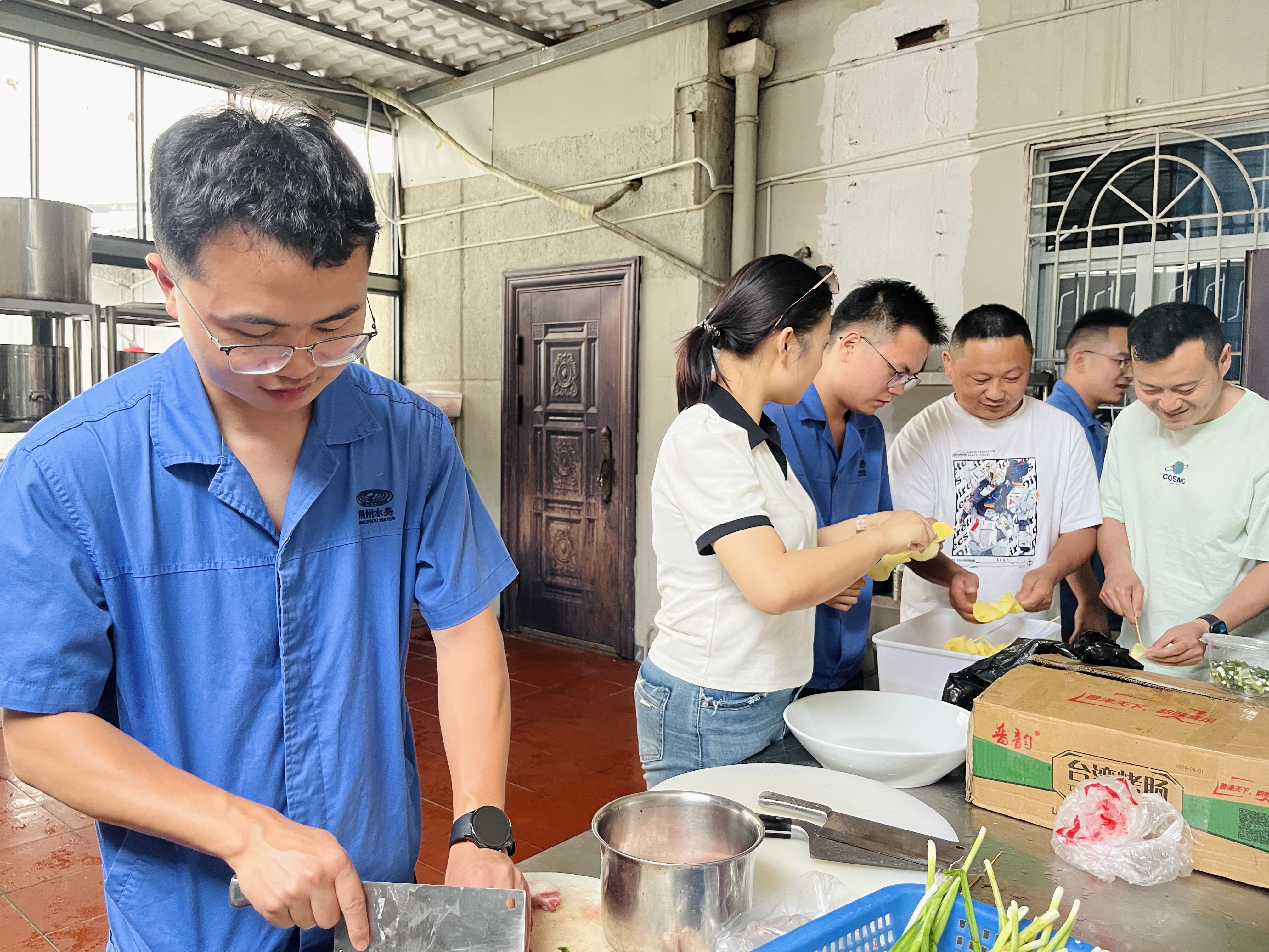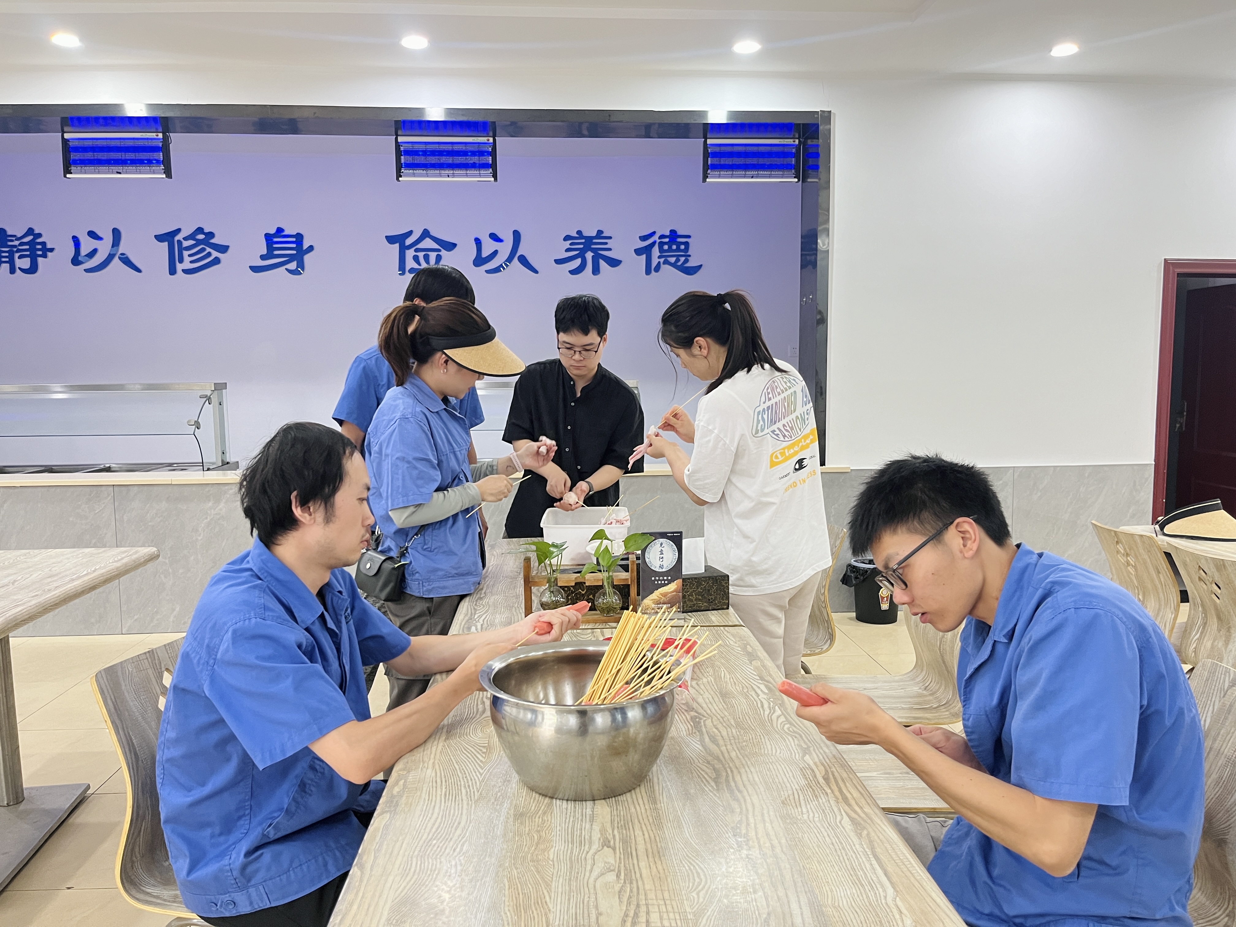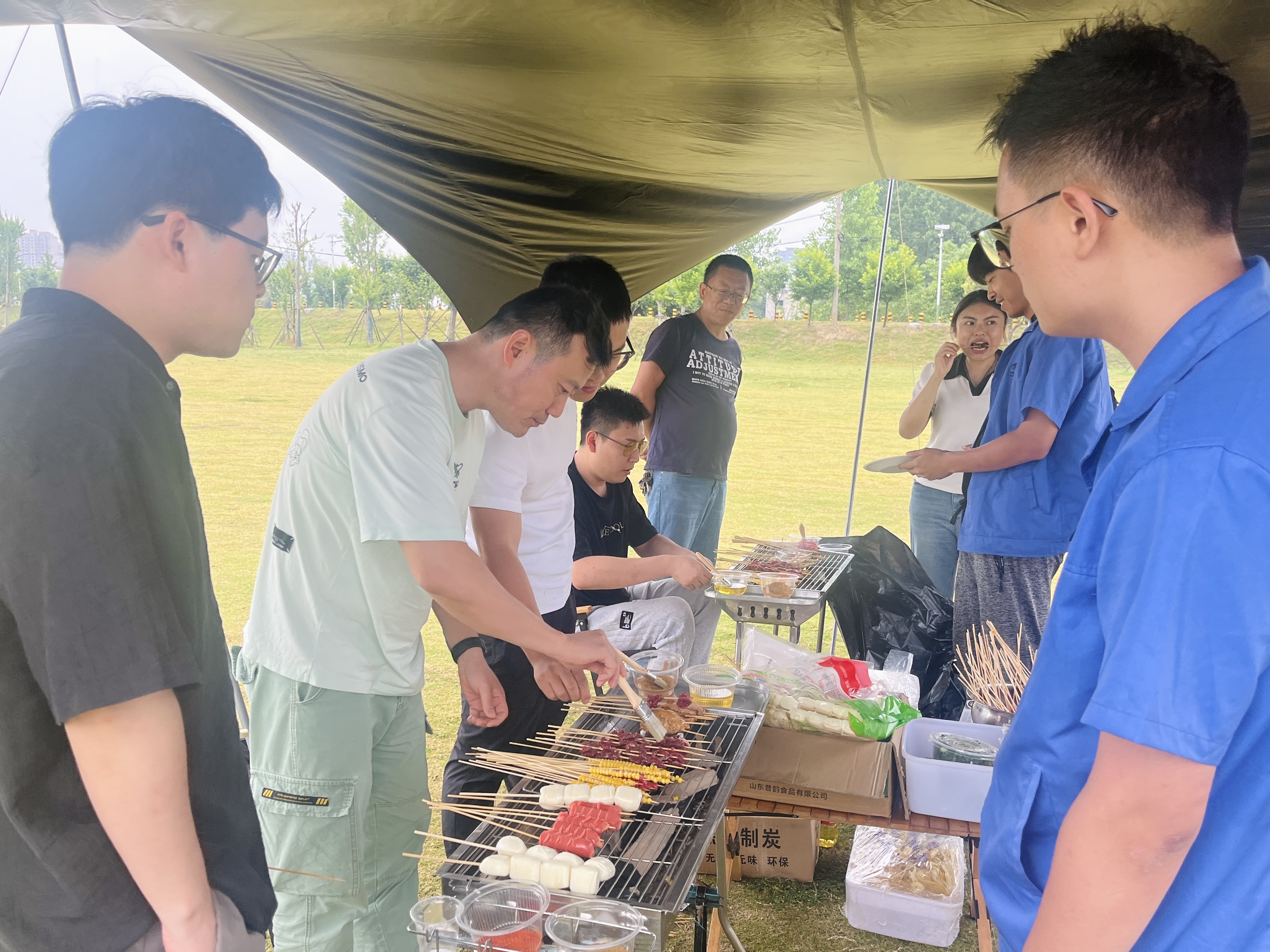 烧烤活动开始前,大家齐心协力,合理分工,准备着烧烤的食材和用品。有的准备原料,有的串串儿,有的准备烧烤用具……每一道工序都特别认真。看着这些飘香四溢的美食,享受自己动手烧烤的乐趣,减压又有美好的成就感。