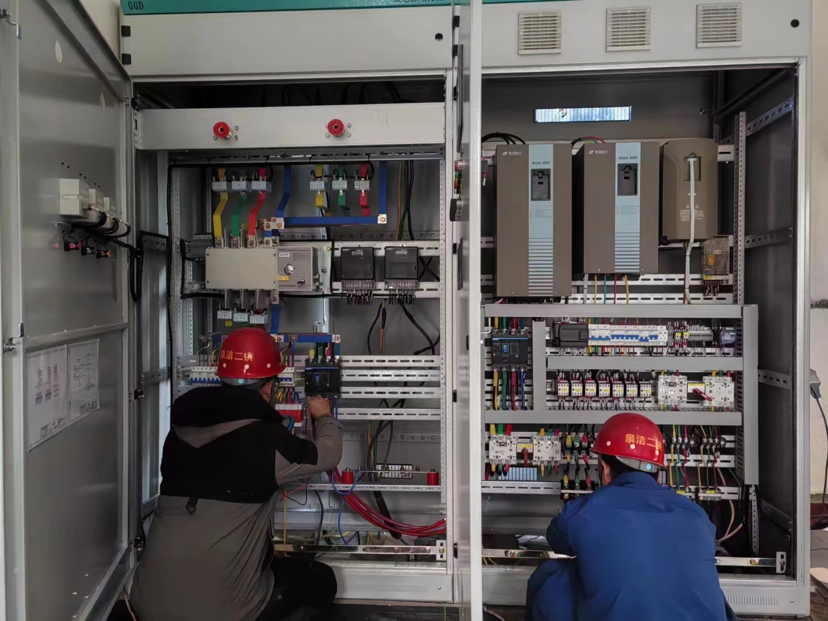到达水厂后,经过对所有设备的详细检查和评估,很快技术员们便商讨出了可靠高效的整改方案,在当地水厂工作人员的全力配合下,整改工作紧锣密鼓地开展了起来。由于水厂房门尺寸过小,变频控制柜的体积较大,无法直接从门直接抬进去,这让我们在搬运过程中遇到了不小的困难。好在大家不惧艰险、开动脑筋,拆掉窗户玻璃之后把配电柜从窗口抬入。看似简单的工作,却让八名技术员在寒冬腊月累得满头大汗。正因为有这样一群专业而又热情洋溢的技术员坚持不懈的努力,才使整个设备升级改造工作进行地十分顺利。又因任务本身十分艰巨,一直到晚八点,历经十二个小时,工作才圆满完成。