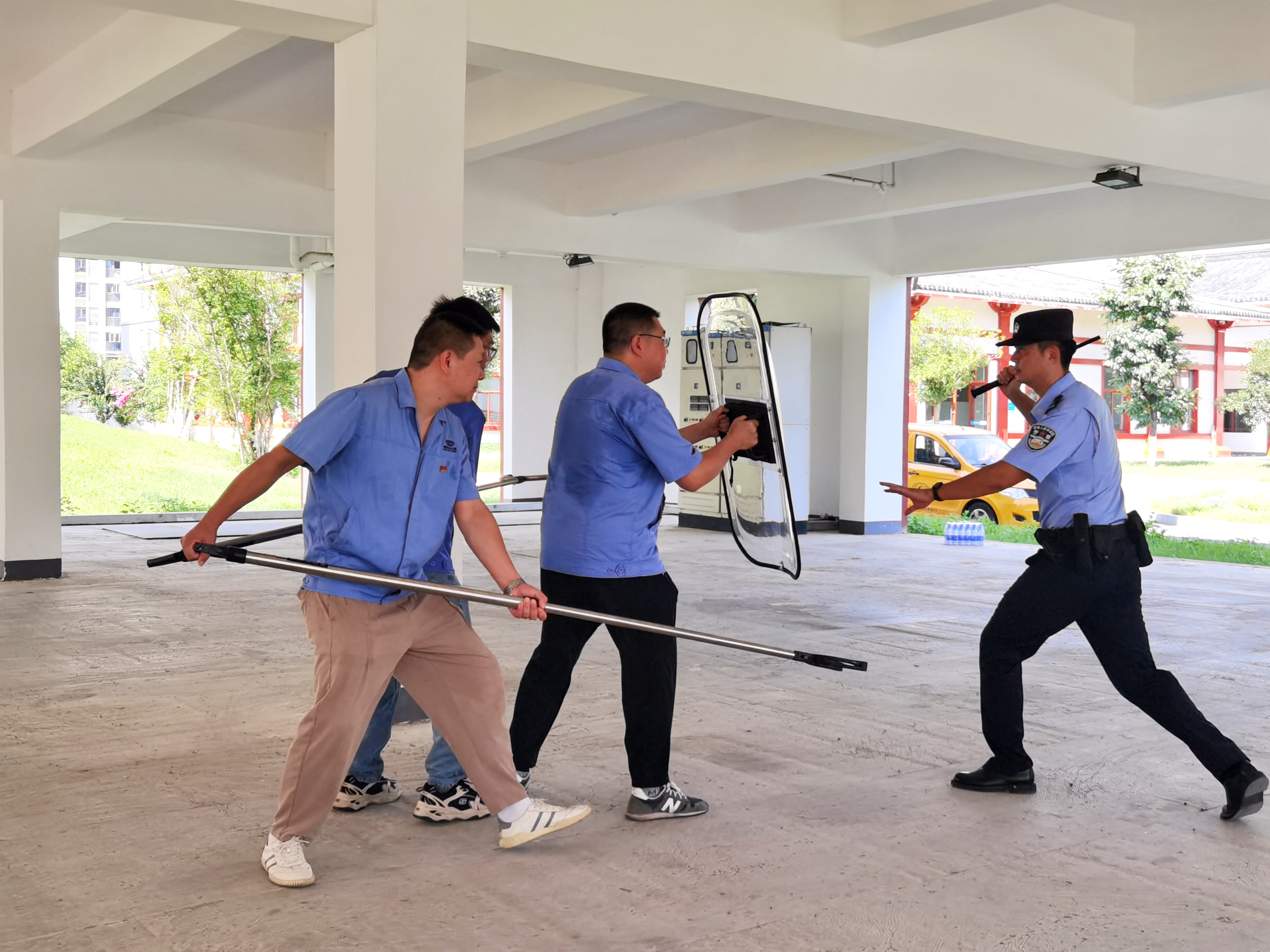 郢都派出所副所长沈璐对生产技术部安全员进行了防暴器械使用培训,现场演示了应对暴徒时的处置方法,对参加活动的全体成员进行了全方位的专业指导,让大家更详细了解了防恐防暴的相关知识。