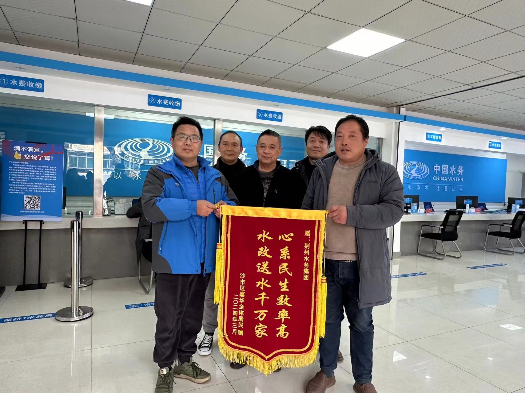 水改完成后,小区居民为表示感谢,给荆州水务集团送来了锦旗。这就是我们企业“参与社会实践,解决民生问题”典型案例。