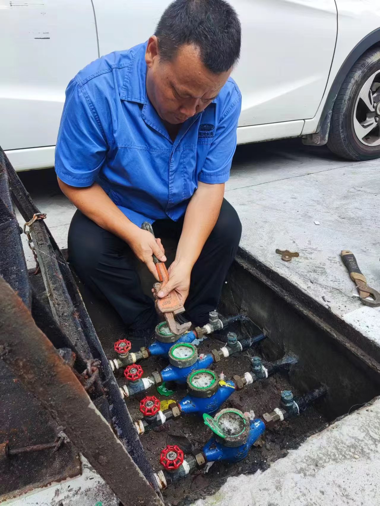 用户随即拨打水务集团客服热线求助。热线工作人员耐心倾听用户诉求,以专业的服务态度安抚用户情绪,并第一时间将工单转办至江汉辖区。接到工单后,辖区维修人员陶师傅和陈师傅迅速响应,第一时间赶赴现场。他们不顾天气炎热,楼上楼下仔细排查,不放过任何一处可能的故障点。经过细致检查,最终在阀门井处发现问题根源。两位师傅凭借丰富的经验和娴熟的技术,迅速展开维修工作,仅用了短短几分钟时间便成功解决问题,恢复了用户家中的供水。