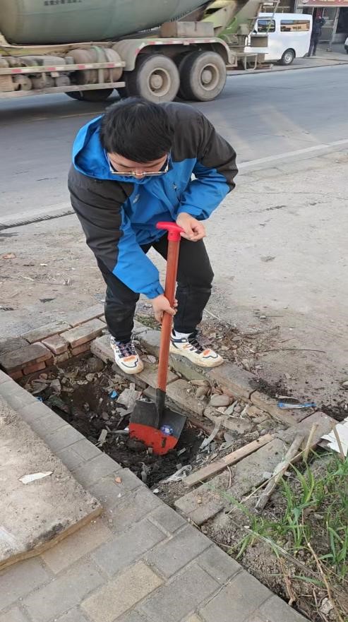 行动当日,工作人员携带铁锹、铁铲等专业工具,顶着初冬寒意全身心投入清理工作。由于部分水表掩埋较深,且周边杂草丛生、石块较多,清理难度较大。面对困难,大家采取“先排查定位、再分层清理”的方式,先确认水表位置,再小心翼翼清除表层泥土和杂物,避免损坏水表及连接管道。