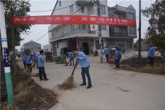 在全国第五个“扶贫日”来临之际,荆州水务集团以“精准扶贫 与爱同行”为主题 ,开展卫生大清扫和“扶贫捐款”活动,助力监利县程集镇三岗村脱贫攻坚。