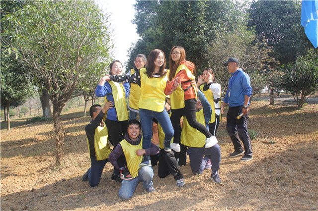 活动中,教练向大家讲解了户外拓展训练的由来及具体游戏规则,并以趣味性的热身方式将队员们分为了“霹雳队”、“红鹰队”、“海洋队”和“星空队”4个团队,并各自制定了口号和队歌,进行了团队建设、团队融合、团队展示。随后,在教练的指导下各队队员参加了“人体传送带”、“下巴传球”、“诺亚方舟”、“激情节拍”、“杯子舞”等训练项目。