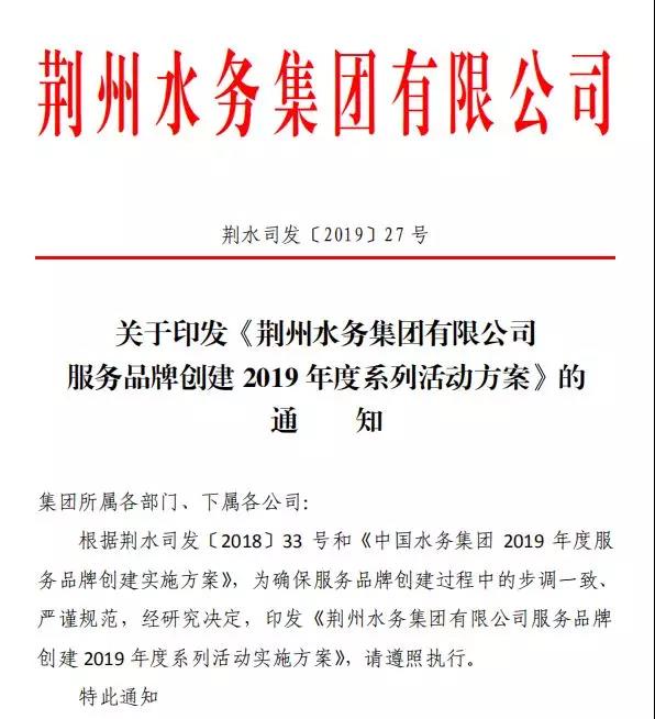 服务品牌创建是年度重点工作,也是集团重大发展战略,创建工作要求高、时间紧、任务重,为了确保各项任务精确落实,荆州水务集团高度重视,并制定了一系列方案,层层推进,步步落实。