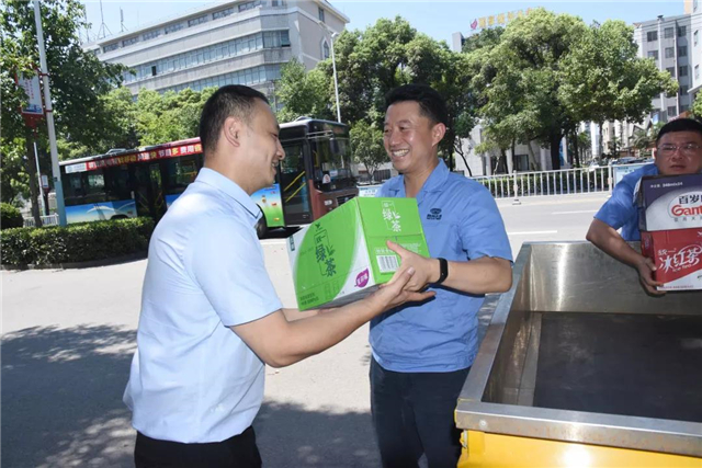 7月26号上午,骄阳似火,荆州水务集团党委书记、总经理石明望带领副总经理葛世玉、吕燕华、总经理助理曾兵及工会副主席岳晓郁等人,头顶烈日,分别前往三个水厂、6个供水营业网点、5个工程施工现场以及滩桥、锣场乡镇供水服务站看望慰问了高温下奋战一线的供水员工,为他们送去了绿豆、白糖、纯水等防暑降温用品,让员工们能在炎炎夏日感受到来自水务大家庭的点滴关怀与丝丝清凉。