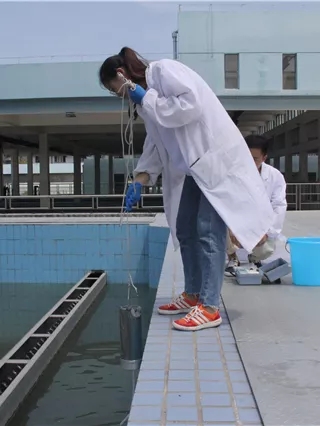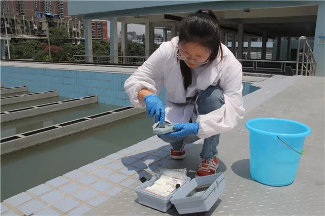 荆州水务的化验员检测时的微笑