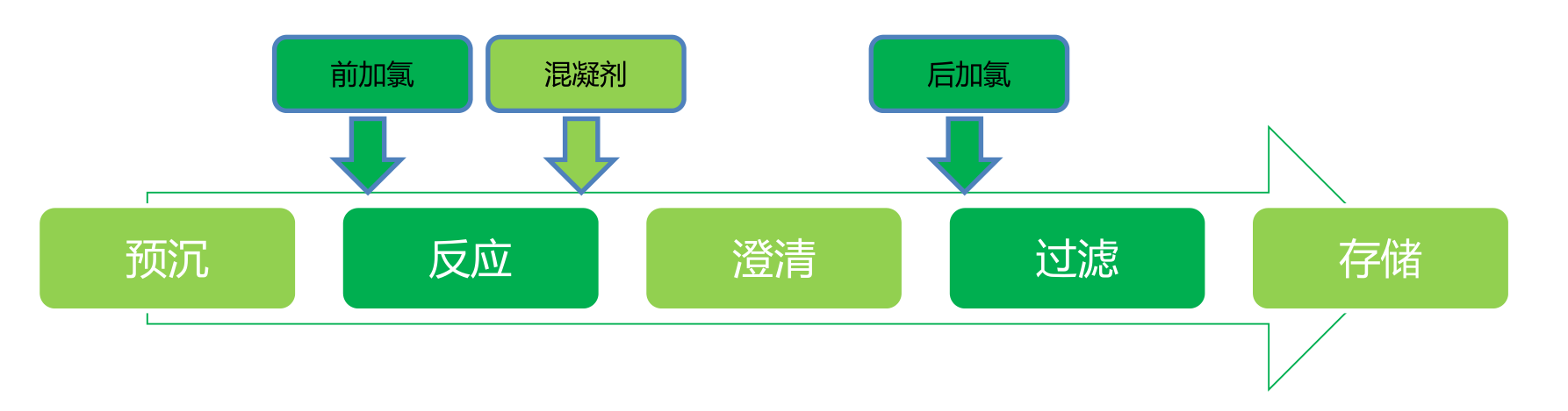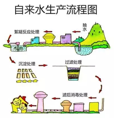 常规制水工艺:混凝、沉淀、过滤、消毒〖优点:生产便捷,成本更低〗