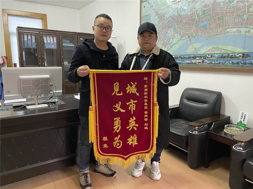 近日,在荆州水务集团管网部,有位市民前来送上了一面“城市英雄 见义勇为”的锦旗,并对帮助自己抓偷车贼的事情深表感谢。