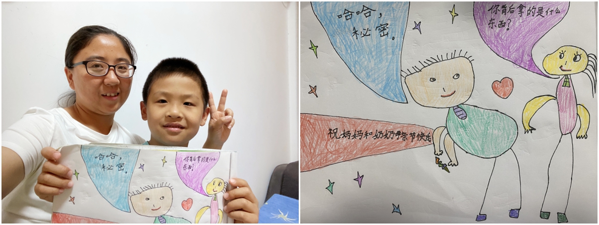 “我的妈妈眼睛可大了,笑起来特别好看!”——周珂宇的儿子胡家乐
