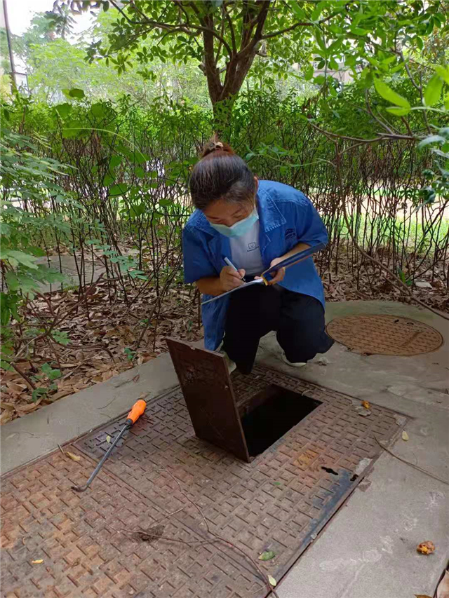 最难抄的莫过于小区的地表。由于多安装在绿化带当中,蚊虫密集,而且一般表埋较深,经常需要打着手电筒、趴在地上才能看清表镜上的读数。可尽管如此,她还是每台水表都认真抄到位。“只有把每台表都抄准了,水量统计和分析才会准确”,芦佳这样说到。累了就稍微停下来,摘下潮湿闷热的口罩,喝口水、喘口气,然后继续奔赴下个楼栋。