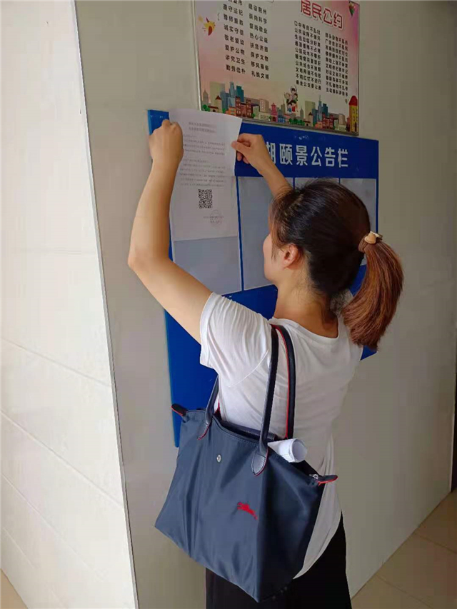 一整天马不停蹄的工作下来,芦佳早已筋疲力尽,但也终于抄完了小区的水表。来不及休息,她又将事先打印好的通知单张贴到每栋楼的公告栏,倡导小区居民下载“指尖水务”APP程序,采取零接触的方式手机查询和缴纳水费,以此强化自身安全,降低交费人员聚集形成疫情防控风险。
